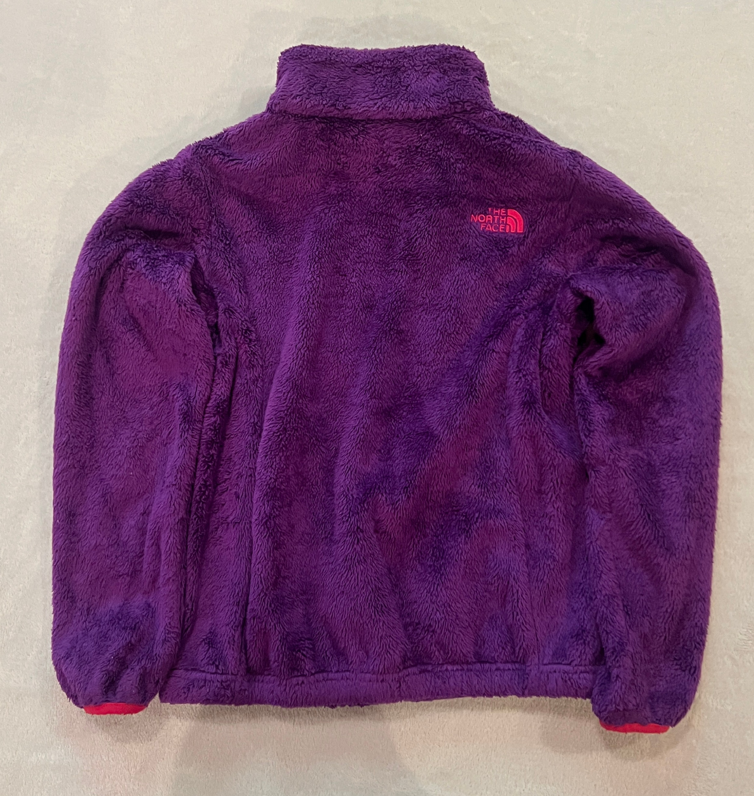 This cozy The North Face fleece jacket for girls is perfect for keeping warm during chilly days. Sized M (10/12), this purple jacket features a soft, plush interior, a full front zipper with a vibrant pink trim, and the iconic North Face logo. Ideal for outdoor activities or casual wear, it’s in good condition and ready for a new owner.